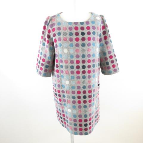 【中古】ビアーシュ Biersch ミニワンピース 七分袖 Iライン ドット グレー 紫 青 38 *E493 レディース