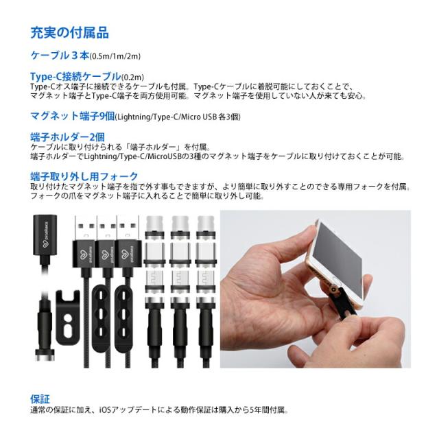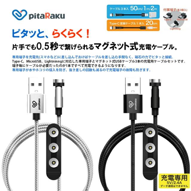 魔法のスマホ充電ケーブル pitaRaku(ピタラク) PRS-01 充電ケーブル USB microUSB USBType-C Lightning マグネットケーブル ![]() ![]() ![]() | ||||