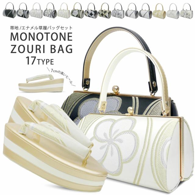 モノトーン 草履バッグセット 7cmヒール 3枚芯 草履 選べる 15タイプ ホワイト ゴールド 黒 シルバー 振袖 七五三 フリーサイズ M L 相当