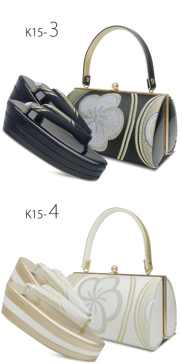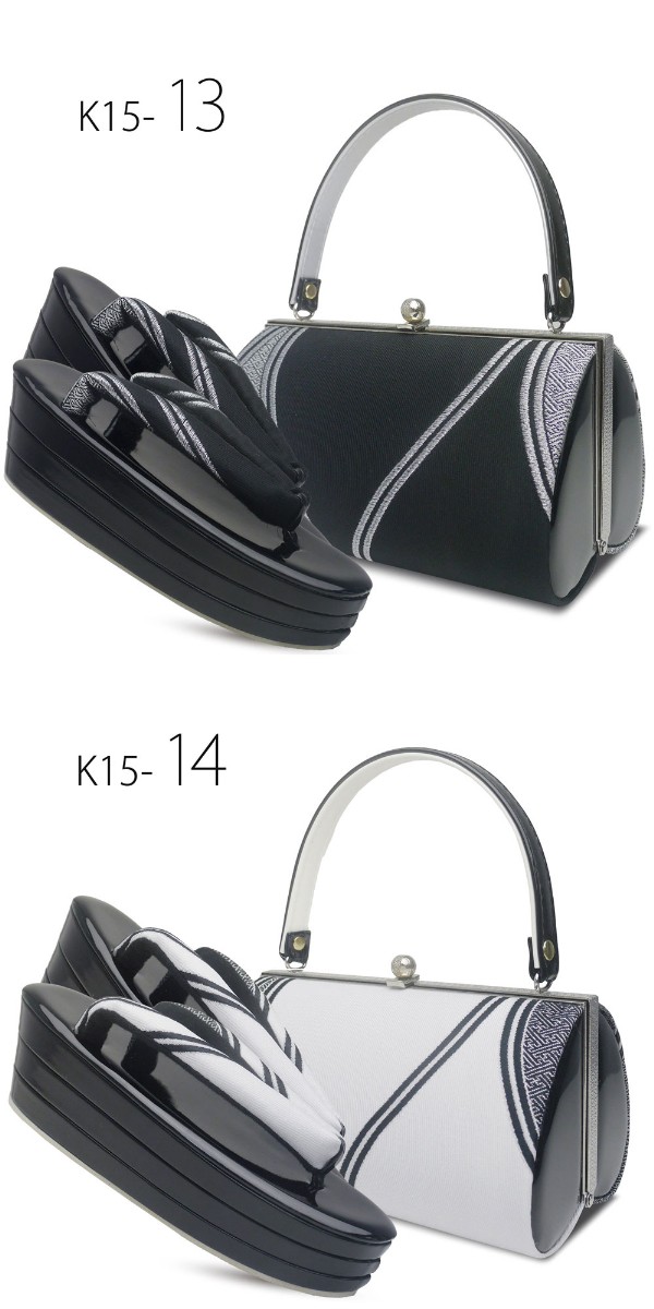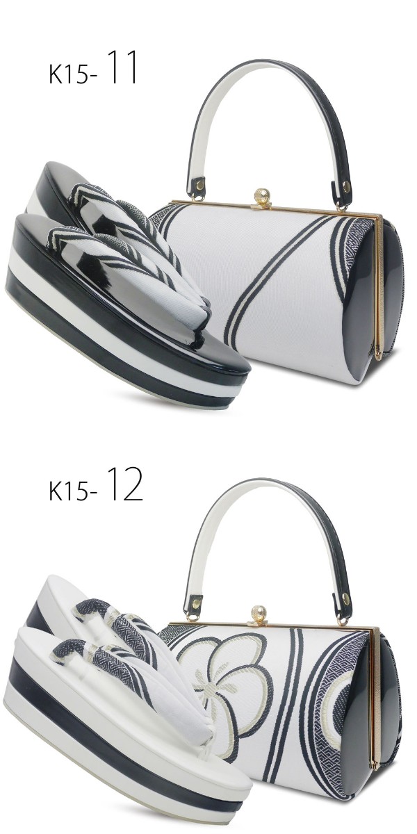 モノトーンの3枚芯のハイクラス帯地草履バッグセット