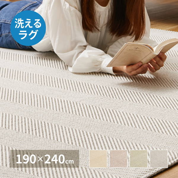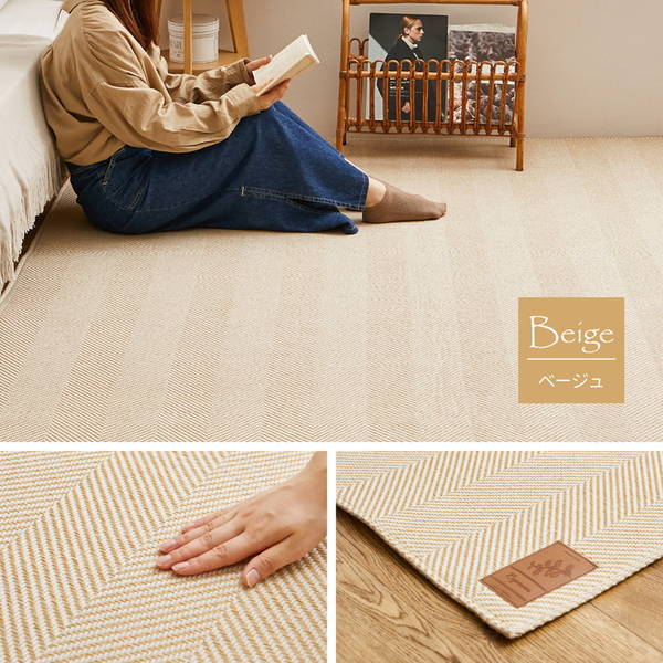 ラグマット カーペット ヘリンボーン柄 190×240cm おしゃれ ボーナ 厚手 ホットカーペットカバー 床暖房対応 滑り止め付き