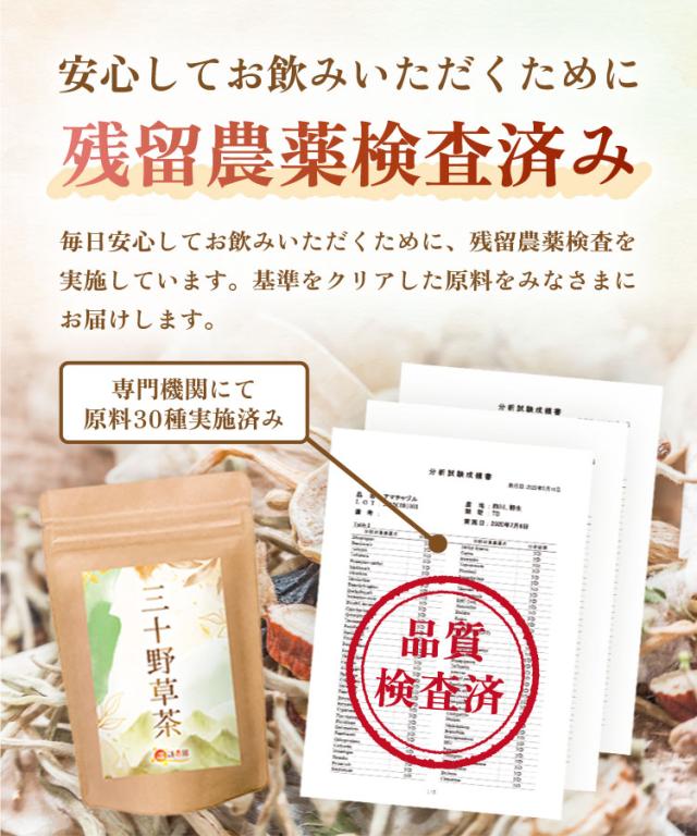 【公式】温活農園 三十野草茶 3g×30包 ティーバッグ 三十野草 さんじゅうやそうちゃ 混合茶 ブレンド茶 残留農薬検査済み 茶葉 飲みやすい おいしい 飲み方 オススメ 健康茶 ティーバッグ ママセレクト 野草茶 国内製造 漢方 生薬 ティーパック ハブ茶(インド産) プアール 生姜 フェンネル ケイヒ ウコン 甘草 バンザクロ はと麦 ウラジロガシ ビワ葉 ラフマ 柿の葉 ごぼう ベニ花 ドクダミ 熊笹 クコの葉 カキドウシ ギムネマ シソ ウコギ チャーガ エンメイ草 クミスクチン グァバ アマチャヅル クワンソウ レイシ 長命草粉末 メディアで紹介 口コミ レビュー SNS映え Instagram ランキング 定期便 リピート メール便