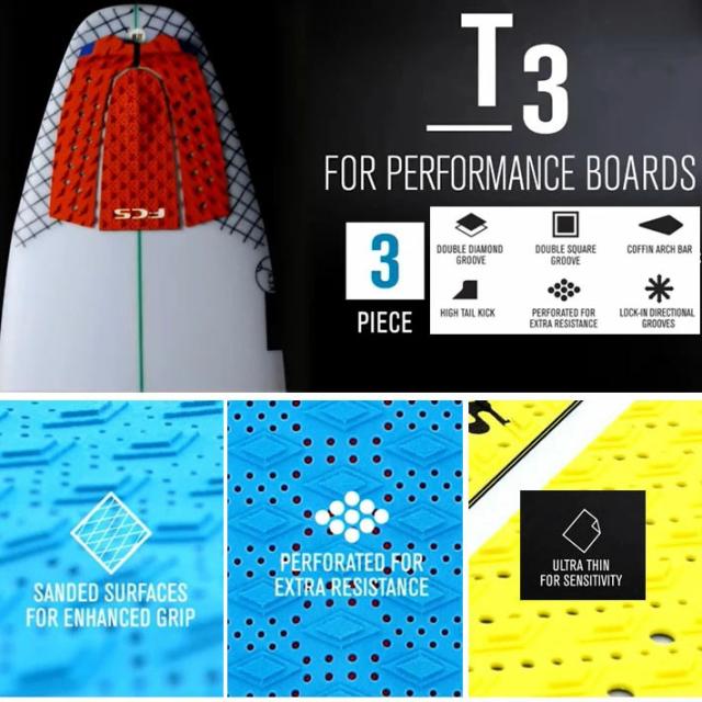 FCS エフシーエス デッキパッド T-3 サーフトラクション T3 3ピース サーフィンデッキ デッキパット