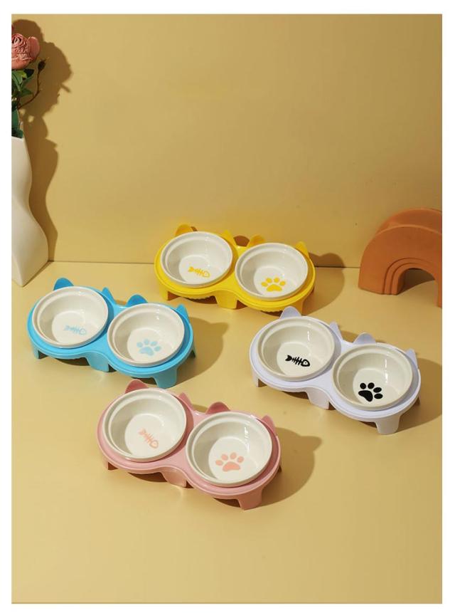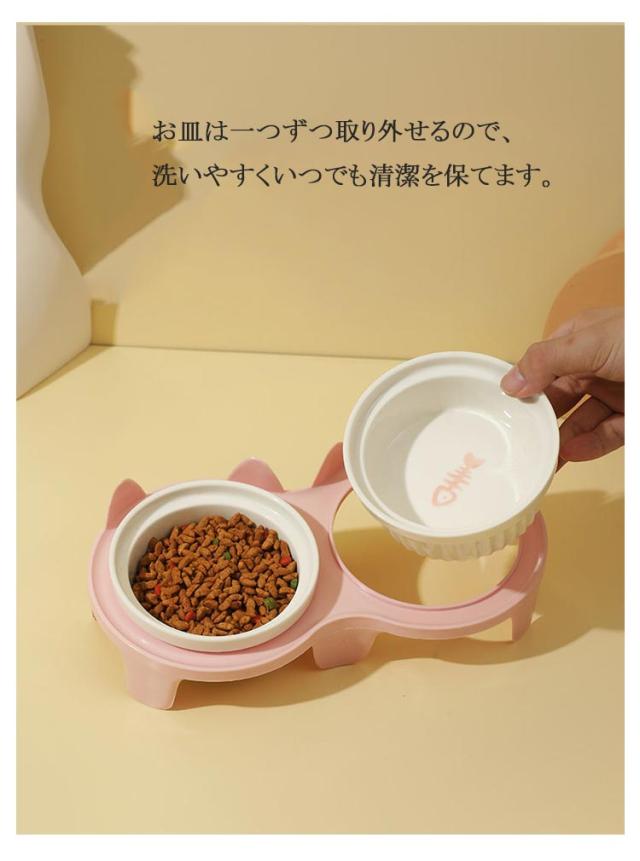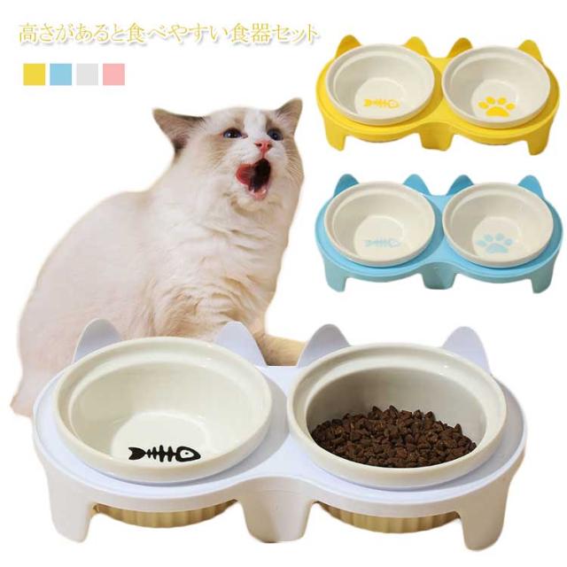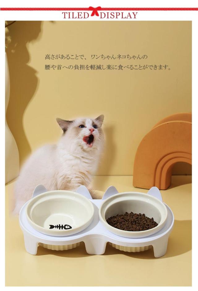 ダブル おしゃれ ペットグッズ 陶器 餌入れ セラミック えさ皿 犬 食器 えさ 餌入れ スタンド付きセット 皿 水入れ ギフト フードボウル ご飯皿 水飲み 食べやすい 傾斜 餌皿 エサ入れ 滑り止め 猫 かわいい プレゼント ペット食器台