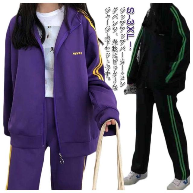 春 全3色 スポーツウェア 上下セット レディース ランニング 長袖 2本ライン パーカー ジャージ 2点セット ジップアップ スウェットパンツ セットアップ 運動着 トレーニングウェア ゆったり 部屋着 カジュアル アウトドア おしゃれ サイドライン 大きいサイズ 送料無料 秋