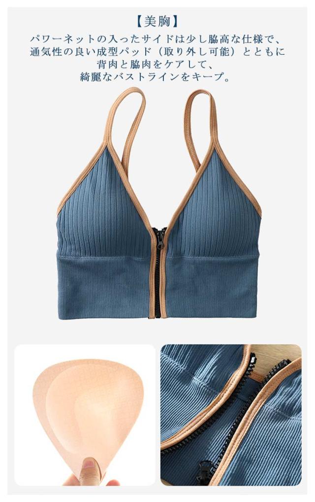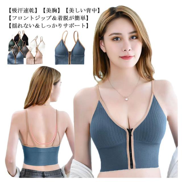 フロントジップ トレーニングウェア レディース スポーツブラ 抗菌 スポーツ ブラ ヨガ 下着 リブ キャミソール ジム ブラジャー 女性 リブ編みスポーツブラ 蒸れなく パッド取り外し可能 3Dカップ 揺れない