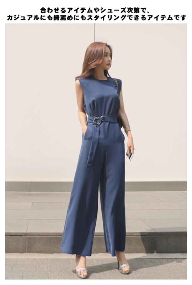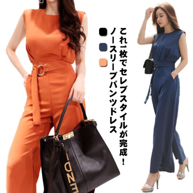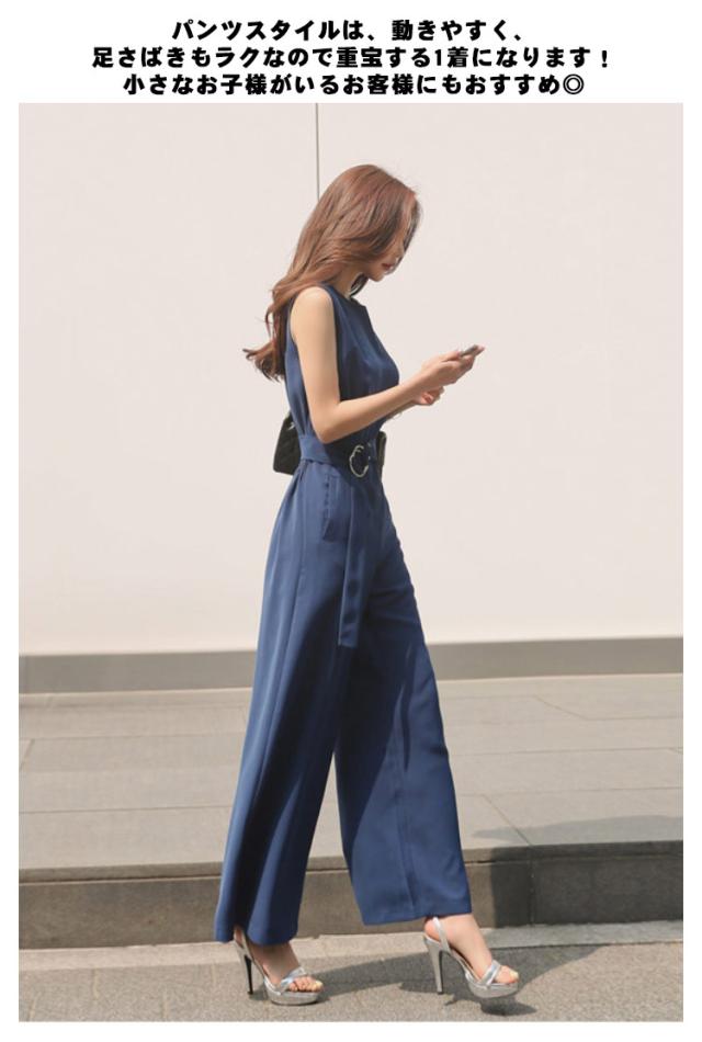 パンツドレス ポケット付き 卒園式 オールインワン 袖なし 卒園式 ウエストベルト 大人 上品 きれいめ 入学式 レディース 入園式 無地 ママスーツ 夏 ノースリーブ