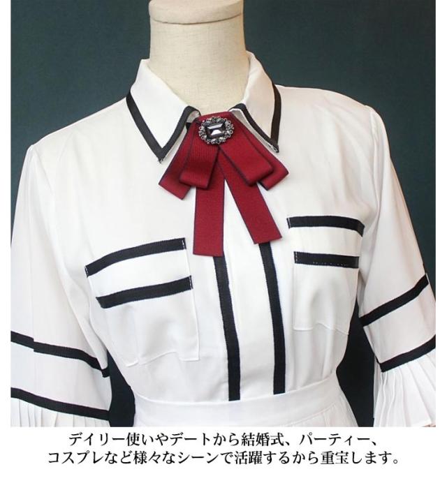 お姫様 レディース ビジュー付き 卒業式 全20色 制服 ネクタイ リボンタイ 英国風 イギリス ゴージャス ユニフォーム スーツ リボン ベルト ピン ブローチ 全20色 子供 大人 リボンブローチ