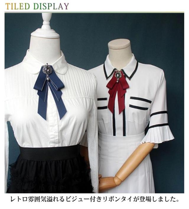 | いつものスタイルを新鮮な印象に変えてくれるリボンタイ。 レトロ雰囲気溢れるビジュー付きリボンタイが登場しました。 シャツやワンピース、ニットなど色々なアイテムと合わせやすく、メリハリのある上品スタイル完成。 デイリー使いやデートから結婚式、パーティー、コスプレなど様々なシーンで活躍するから重宝します。 | |