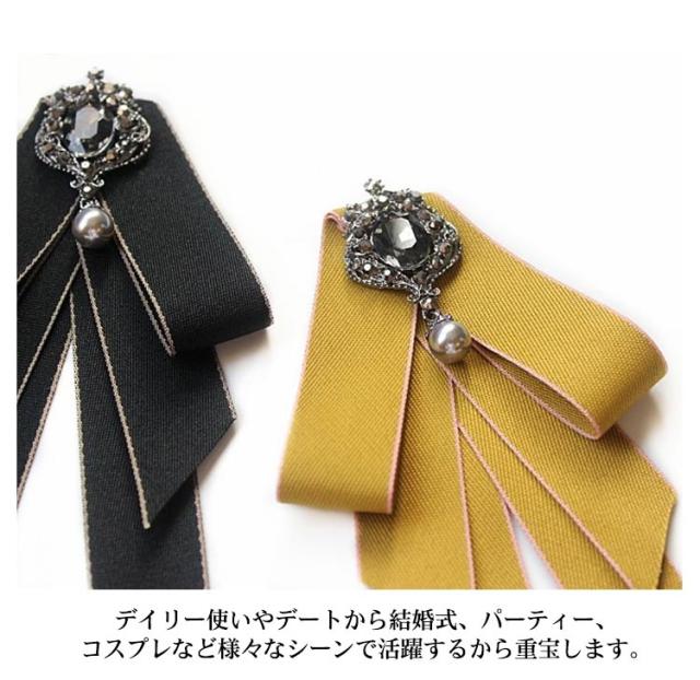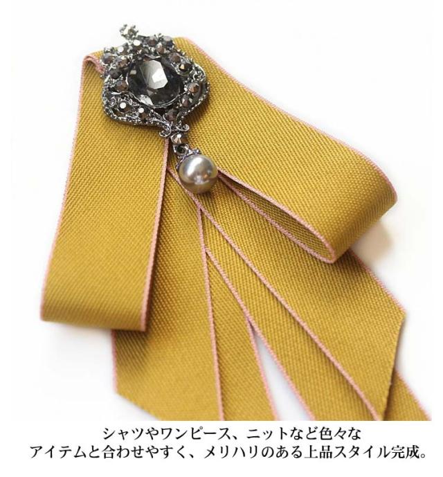 制服 リボン 華やか 発表会 レトロ 普段使い ビジュー付き リボンブローチ パーティー ピン 結婚式 入学式 リボンタイ 演奏会 アンティーク 優雅 フォーマル スーツ かわいい ロング