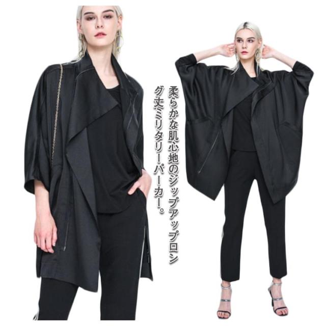 パーカー レディース ジップアップ マウンテンパーカー 七分袖 ハイネック 羽織 ジャケット アウター 無地 ミリタリージャケット ジャンパー ブルゾン ポンチョコート ドルマン ドロップショルダー 小顔 ストレッチ 防風 無地