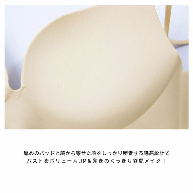 | ノンワイヤーなのに驚くほど盛れる、めちゃ盛りブラ!! 厚めのパッドと脇から寄せた胸をしっかり固定する脇高設計で、バストをボリュームUP&驚きのくっきり谷間メイク! スムーズな質感で縫い目がなく、ピタTにも響きにくいシームレスブラジャーです。 ワイヤーが苦手な方やお家で過ごしたい時などにオススメ。 | |