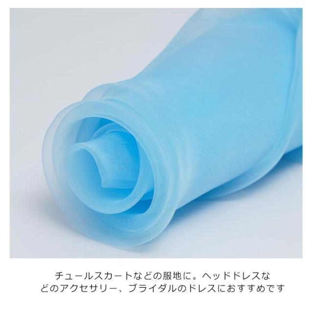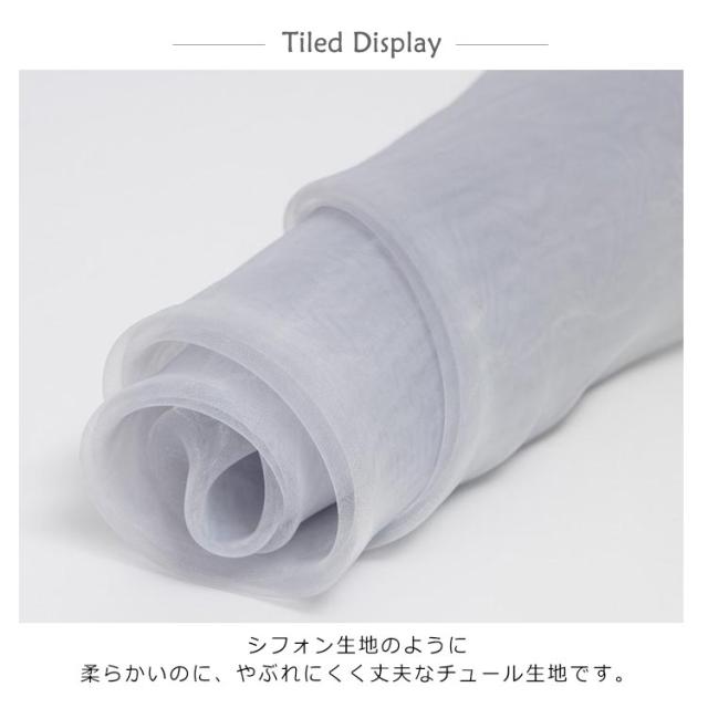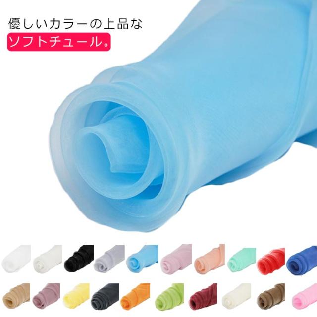 | 優しいカラーの上品なソフトチュール。 シフォン生地のように柔らかいのに、やぶれにくく丈夫なチュール生地です。 チュールスカートなどの服地に。ヘッドドレスなどのアクセサリー、ブライダルのドレスにおすすめです | |