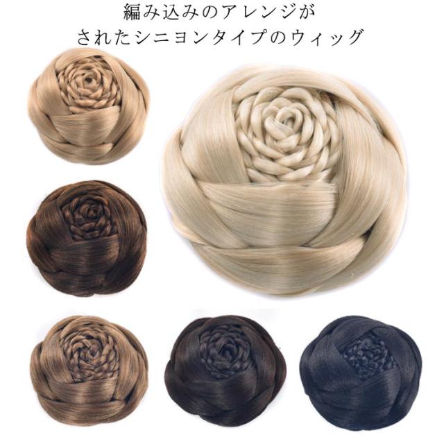 | 編み込みのアレンジがされたシニヨンタイプのウィッグ 着物、浴衣(ゆかた)、袴(はかま)といった和装にも似合います。 お出かけからフォーマルなイベント(結婚式、 披露宴、2次会、お呼ばれ、初詣、成人式、 入学式、入園式、卒業式、卒園式、七五三 など) での髪型・ヘアスタイルを作る際にもどうぞ! | |