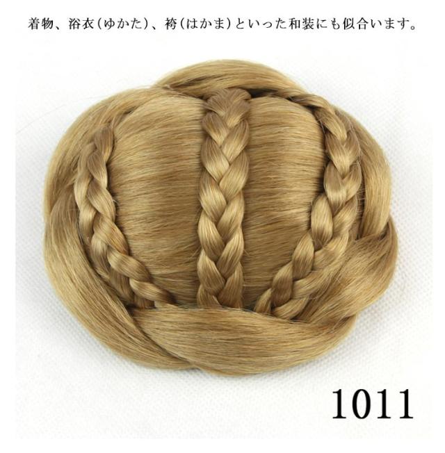 | 編み込みのアレンジがされたシニヨンタイプのウィッグ 着物、浴衣(ゆかた)、袴(はかま)といった和装にも似合います。 お出かけからフォーマルなイベント(結婚式、 披露宴、2次会、お呼ばれ、初詣、成人式、 入学式、入園式、卒業式、卒園式、七五三 など) での髪型・ヘアスタイルを作る際にもどうぞ! | |