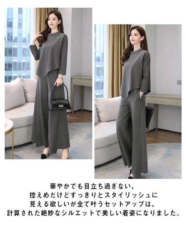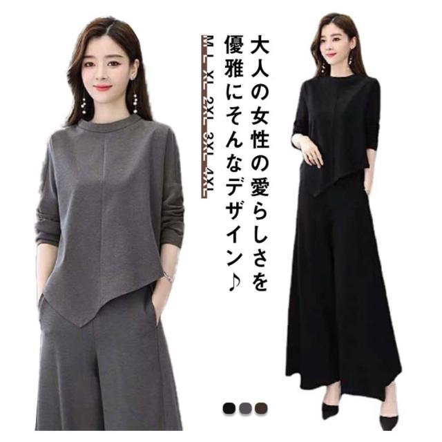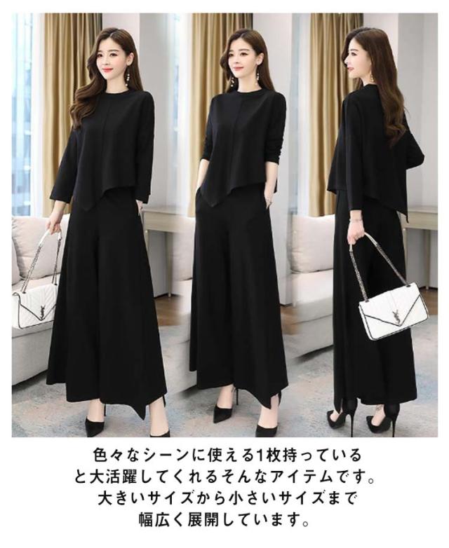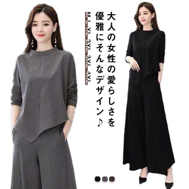 送料無料 パンツスーツ セットアップ ワイドパンツ パンツセットアップ レディース カジュアル おしゃれ 春 秋 パンツ ガウチョパンツ ゆったり 体型カバー 長袖 オフィス カジュアル きれいめ 入学式 ママスーツ 卒園式 通勤 卒業式 着痩せ 母親 春 秋 冬 大きいサイズ