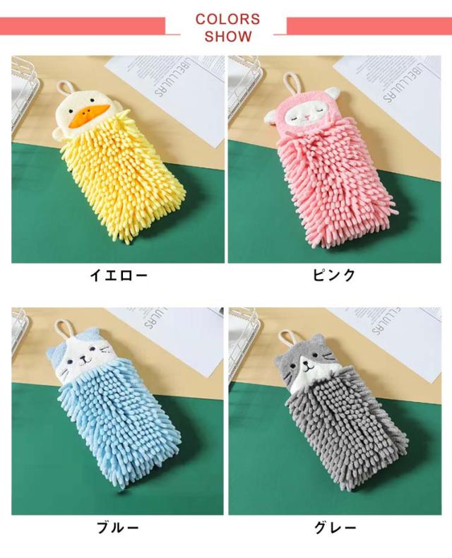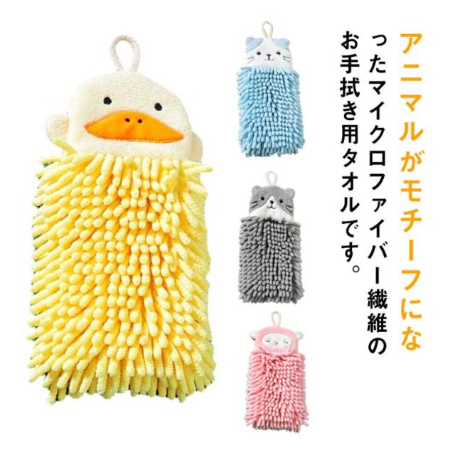 お手ふきモールタオル 壁掛け アニマルタオル 吸水 マイクロファイバー ハンドタオル お手拭きタオル 速乾 洗面タオル ストラップ付き 洗車タオル タオル 柔らかい 洗面所 手拭き 手ふき 紐付きタオル キッチン 可愛い