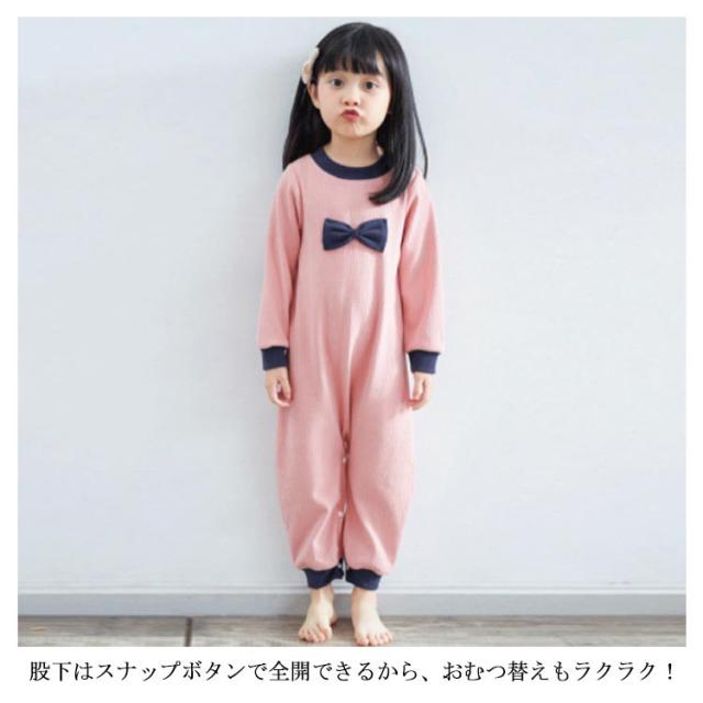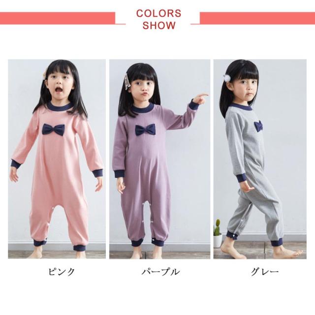 冬 オールインワン パジャマ ルームウェア 部屋着 ロンパース パジャマ 秋服 パジャマ 春服 長袖 女の子 スナップボタン オーバーオール つなぎ 子供服 綿 リボン つなぎ 子供 女児 ベビー ジュニア 寝間着 寝冷え防止 おしゃれ かわいい 春 秋 キッズ