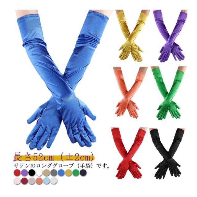 グローブ 肘上丈 ロンググローブ 披露宴 長さ52cm ウエディング ブライダル ドレス 仮装 ウェディング 手袋 サテン 日焼け対策 レディース 結婚式 無地 ハロウイン コスプレ衣装 コスチューム アームカバー パーティー 演奏会 舞台 ステージ 黒 送料無料 フォーマル