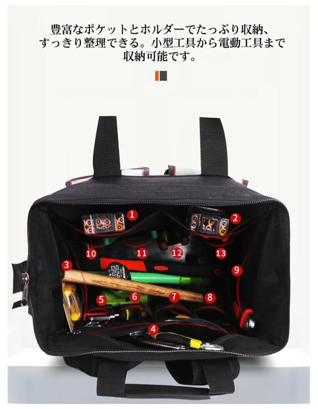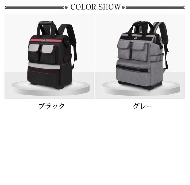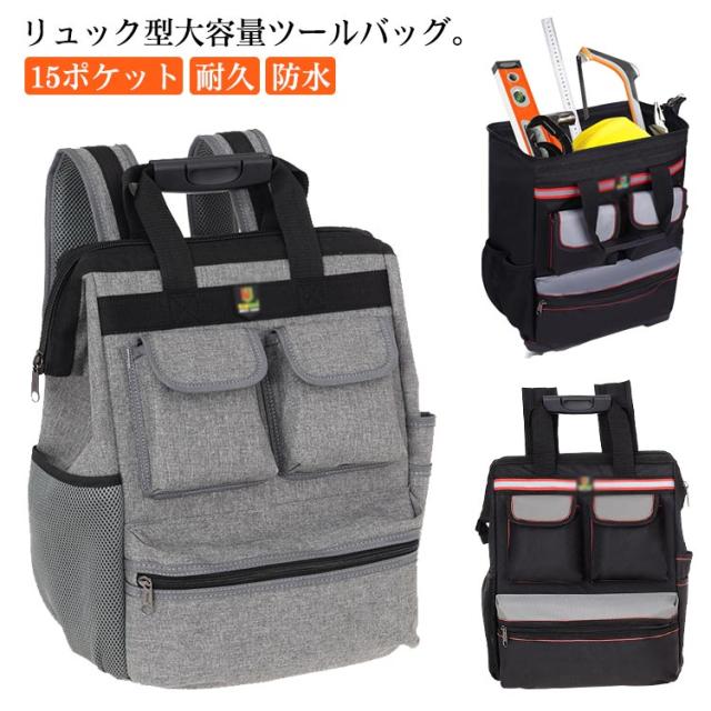 | リュック型大容量ツールバッグ。【15ポケット】 リュックデザインなので、普通の手提げのツールバックに比べてより楽に持ち運びできる。 豊富なポケットとホルダーでたっぷり収納、すっきり整理できる。小型工具から電動工具まで収納可能です。 600D高密度オックスフォードを採用しています。強化縫製でしっかりと仕上げられ、耐荷重、耐摩擦、耐久性に優れてます。 バックパネルやショルダーストラップは幅を広め、柔らかなパッドが付いて、優れた減圧効果があり、長時間に重い工具を負担しても疲れにくいです。また、通気性が高い、汗などを速やかに吸収できます。暑い日でも快適に背負います。 工具入れバッグは様々な道具や工具の収納、携帯に、仕切りがついており大変便利です。ガーデニング、釣り、工芸、建築、大工、請負業者、屋根、ラインマン、石工、鉄工などの作業を携わる人に最適にします。日常生活のDIY活動だけでなく、自動車修理、木工および専門な修理活動も最適です。 | |