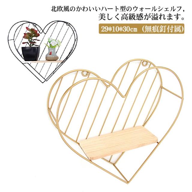 ハート型 ウォールシェルフ 洗面所 ウォールディスプレイ おしゃれ 壁掛け ウォールラック 壁飾り かわいい 棚 木製 壁面収納 ラック モダン 北欧 ウォールデコ 賃貸 玄関 飾り棚 トイレ リビング インテリア アイアン