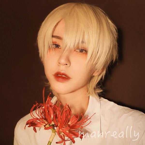 【レビュー投稿で+5%還元】ウィッグ フルウィッグ ショートウィッグ ショートヘア 短髪 かつら 自然 前髪あり コスプレ 男装 おしゃれ かっこいい 可愛い ショート 耐熱ウィッグ ライトイエロー 金髪 小顔効果抜群 文化祭 学園祭 イベント dp012g5