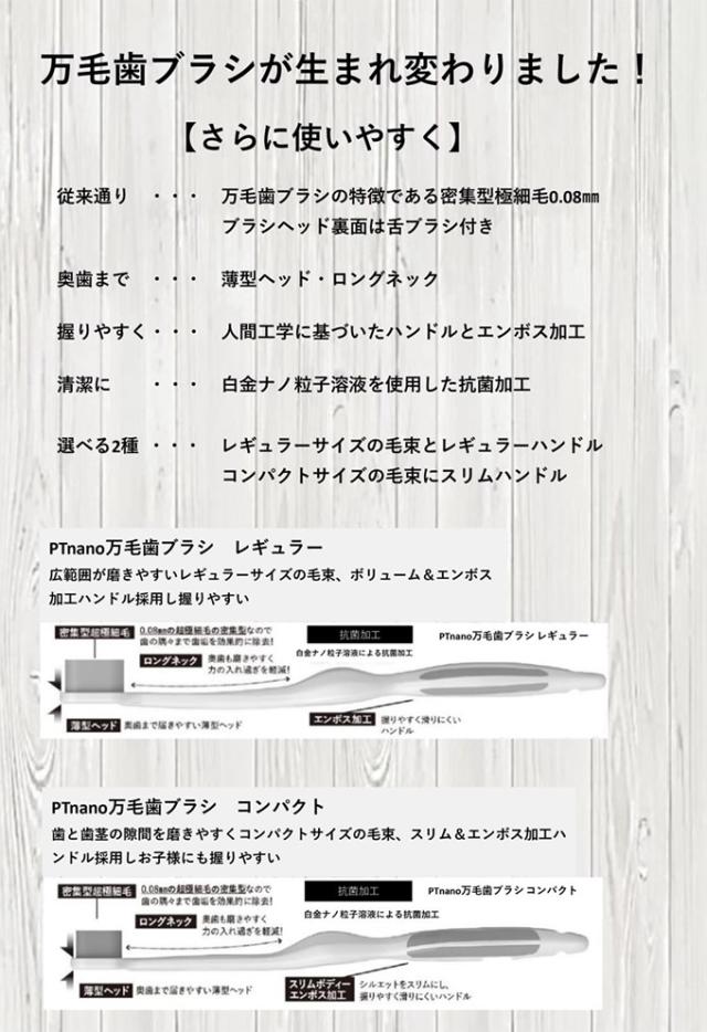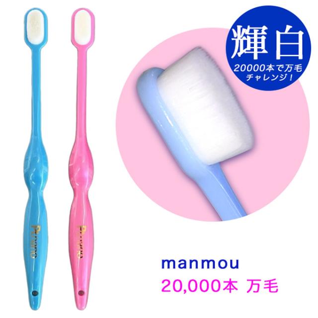 毛先は、20,000本、0.08mmの極細毛、manmou歯ブラシに白金ナノ粒子溶液を含侵した抗菌歯ブラシ