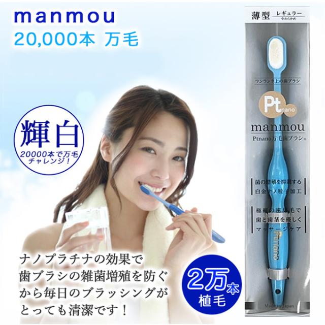 プラチナナノ 歯ブラシ manmou(マンモウ) (メール便送料無料) 極細毛 毛先 2万本 日本製 ナノ プラチナ 舌ブラシ 抗菌 防臭 歯 歯茎 マッサージ 歯周病ケア ブラッシング 万毛 水だけブラッシング 大人用 子供用 女性用 幼児用