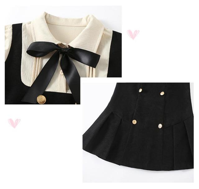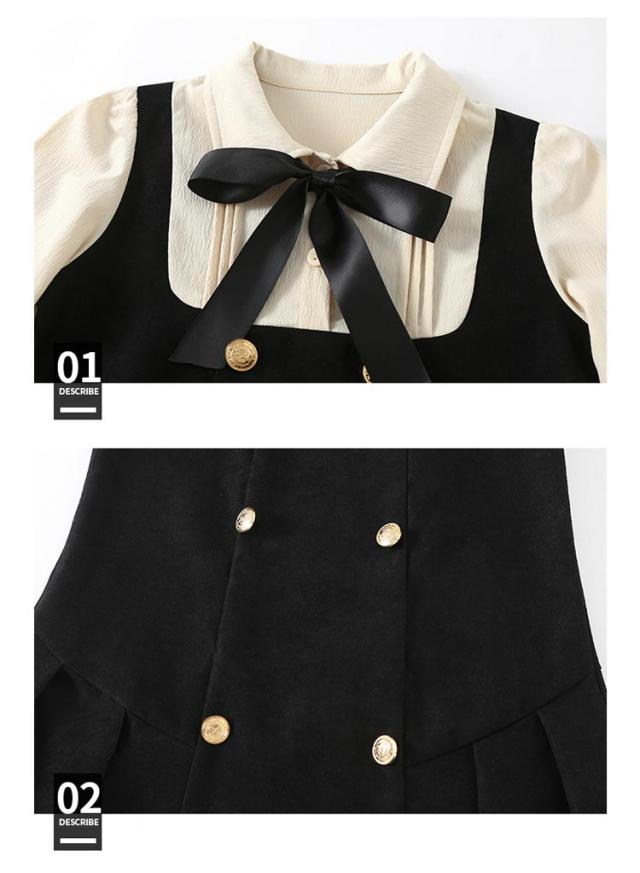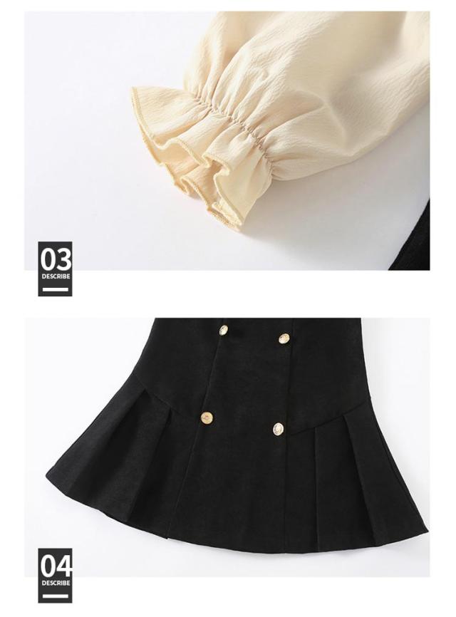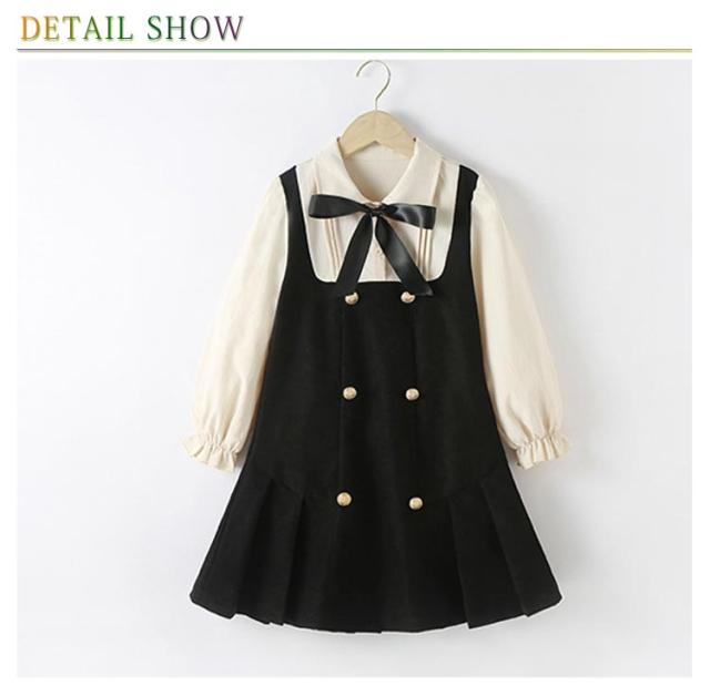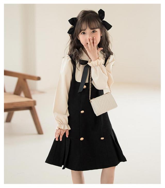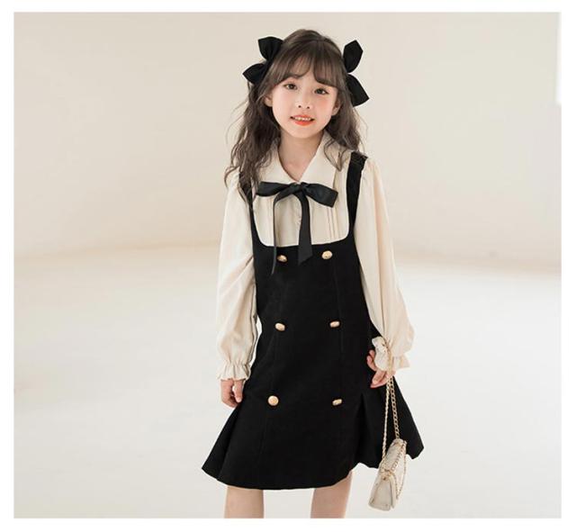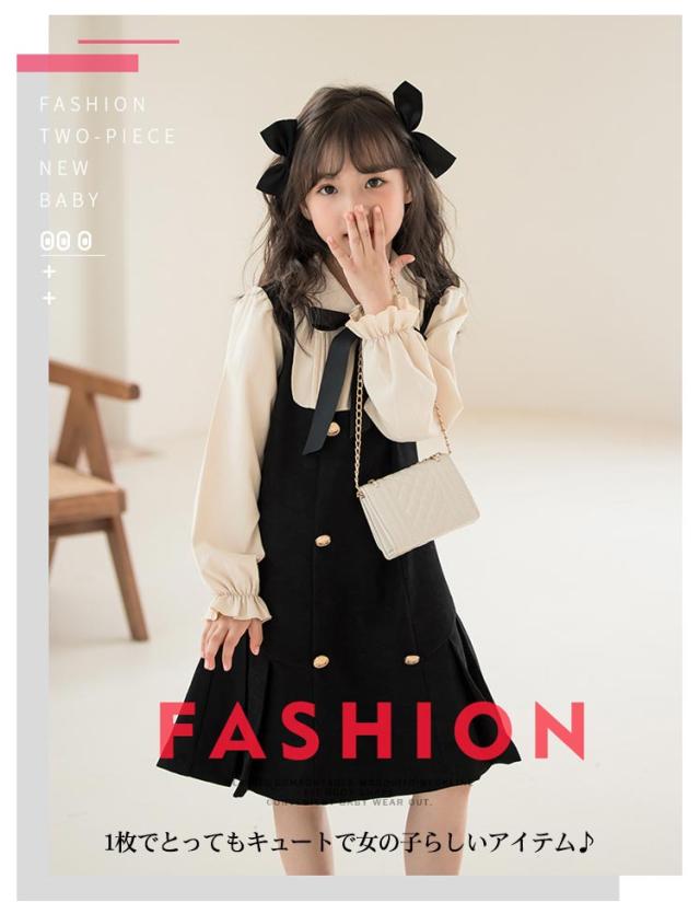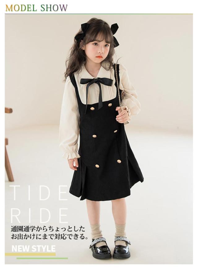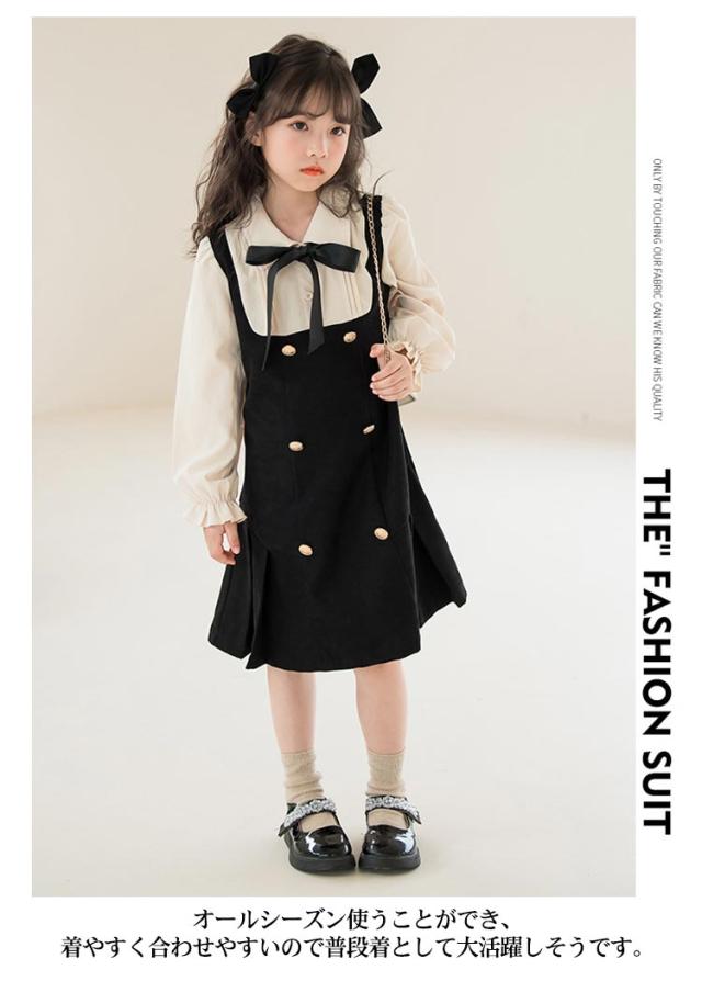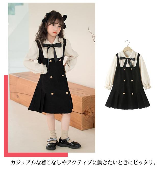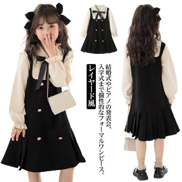 ワンピース レイヤード風 キッズ フォーマルワンピース 女の子 スーツ 子供服 長袖 ブラウスワンピース ドレス ブラック 可愛い 入学式 卒業式 華やか 保育所 保育園 七五三 発表会 ピアノ