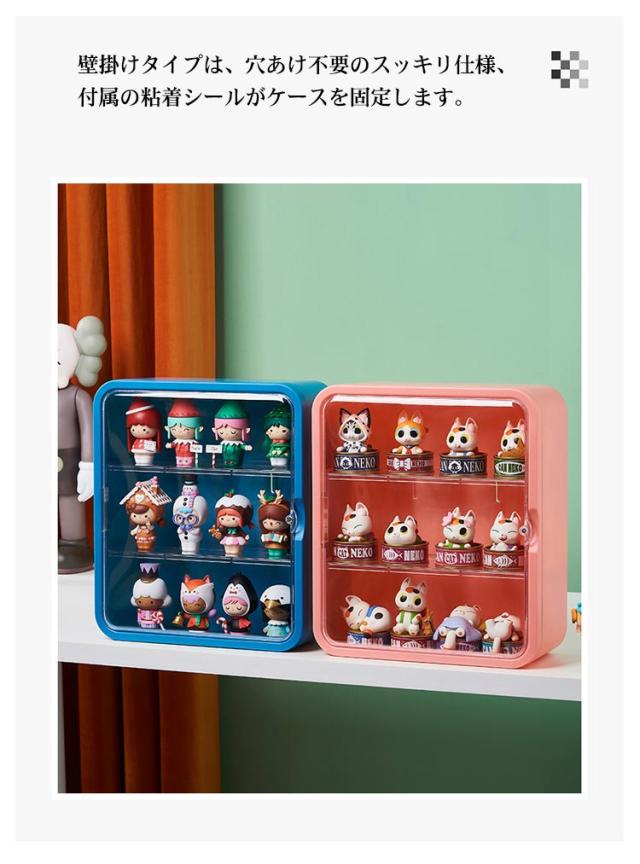壁掛け コレクションケース 扉付き フィギュアケース ディスプレイケース 透明 3段 フィギュア ミニカー ドール 人形 収納 コレクションボックス コレクション棚 クリアケース 展示用 壁掛け棚 薄型 完成品 正方形 磁石 マグネット