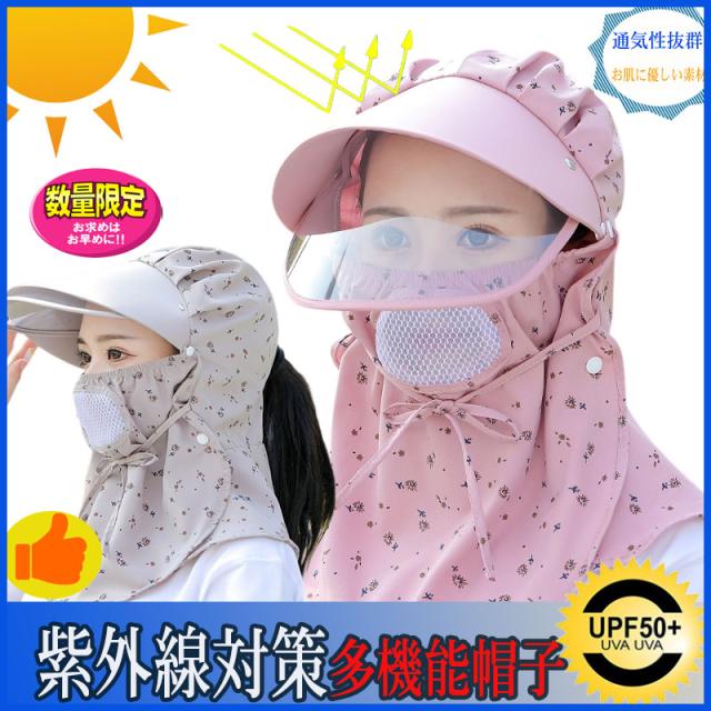 サンバイザー UVカット ガーデニング 帽子 農園帽 つば広 折りたたみ 紫外線対策 日よけ 首ガード おしゃれ帽子 フェイスカバー 農作業 園芸 アウトドア 釣り