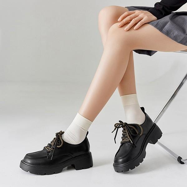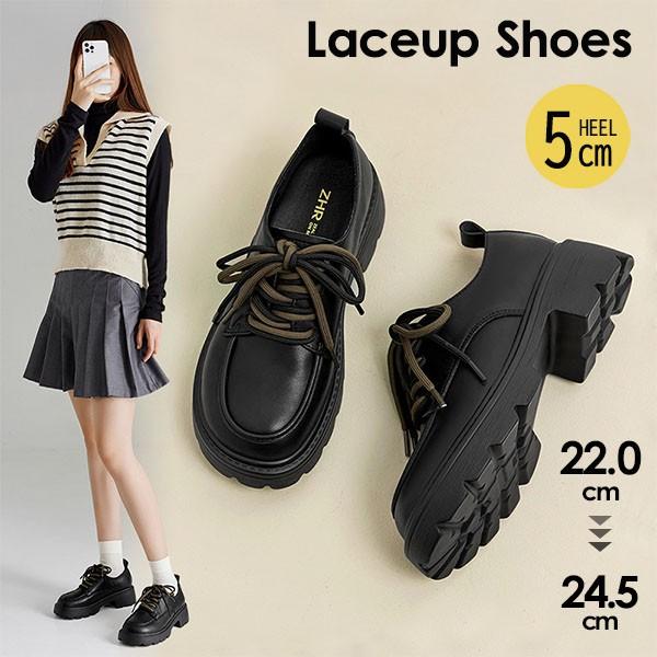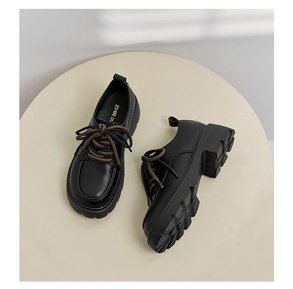 レースアップ シューズ トラックソール 厚底 黒 編み上げ ローファー 学生 スニーカー レディース おしゃれ 可愛い 春秋 フェイクレザー