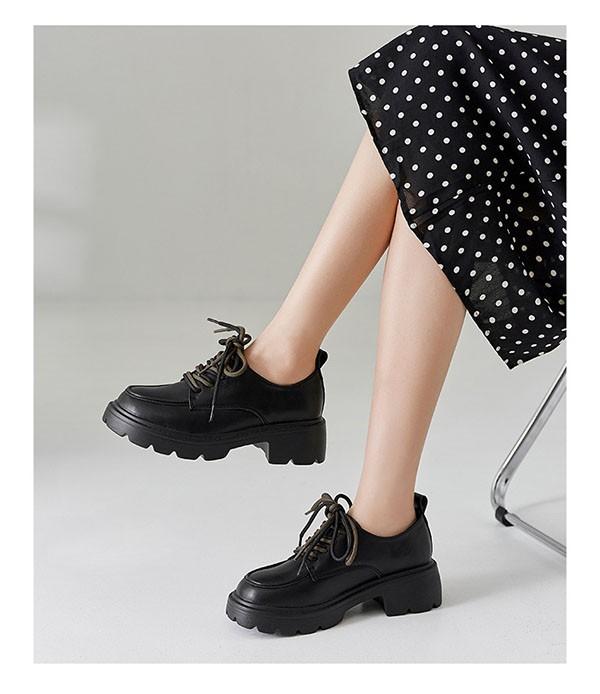 レースアップ シューズ トラックソール 厚底 黒 編み上げ ローファー 学生 スニーカー レディース おしゃれ 可愛い 春秋 フェイクレザー 合成皮革靴 Uチップ スクエアトゥ レトロ ファッション カジュアル ストリート系 フォーマル 軽い 美脚 通勤 通学 22.0 22.5〜24.5 di135x1x1la