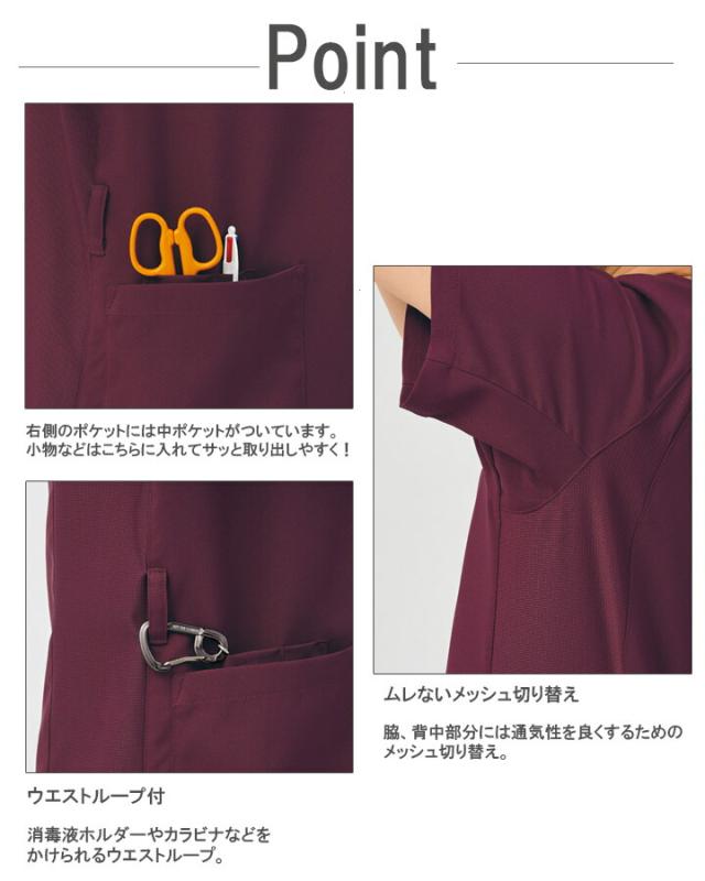 ■機能:吸汗速乾、工業洗濯対応、ストレッチ、制電