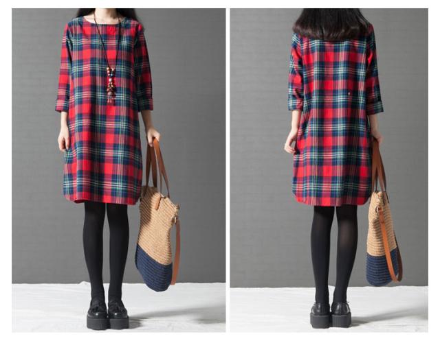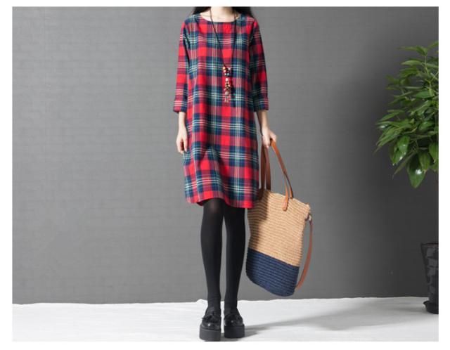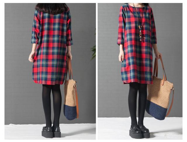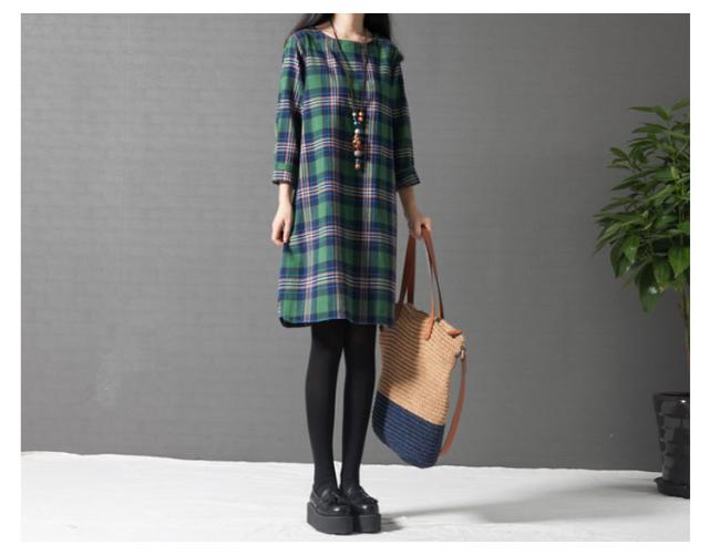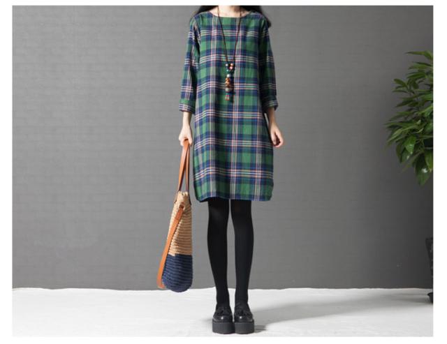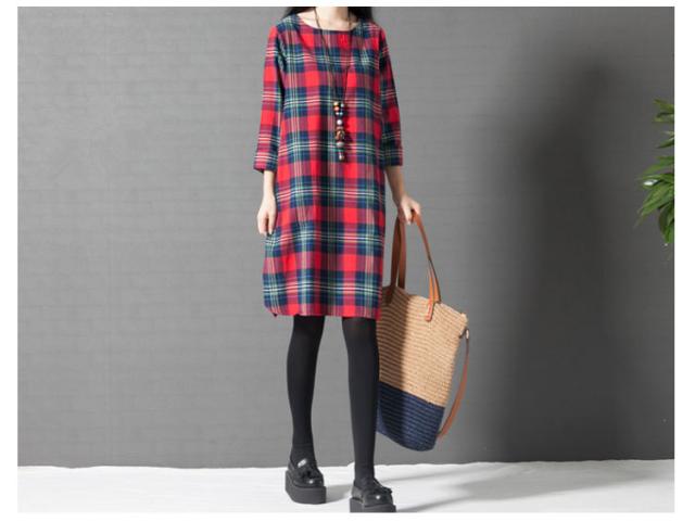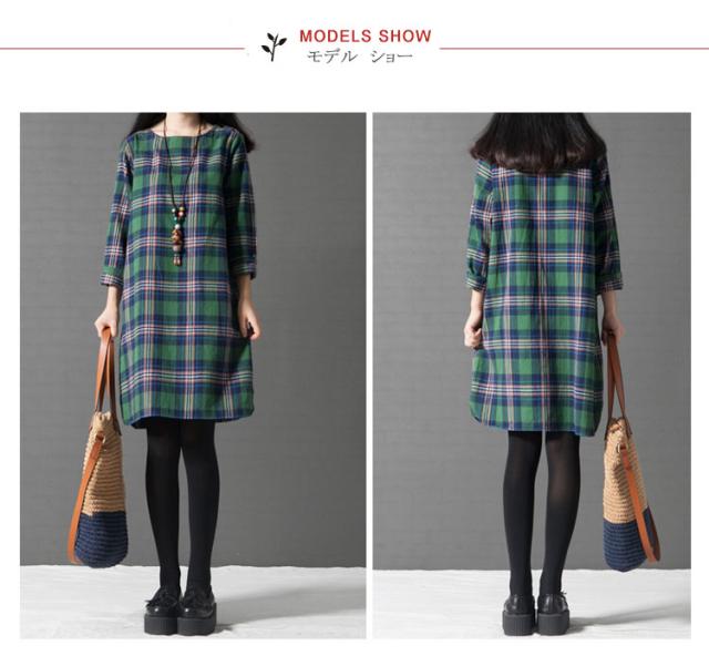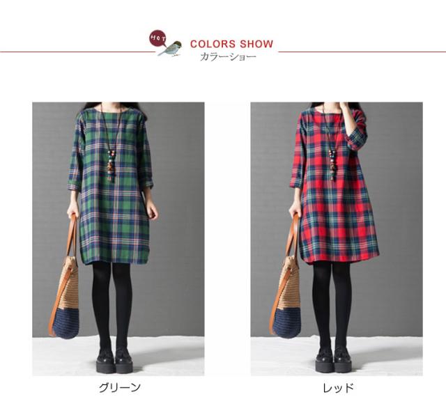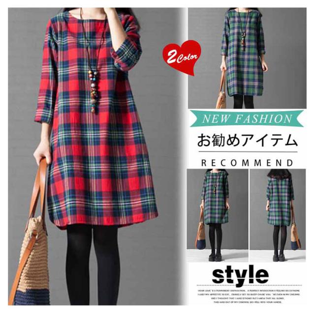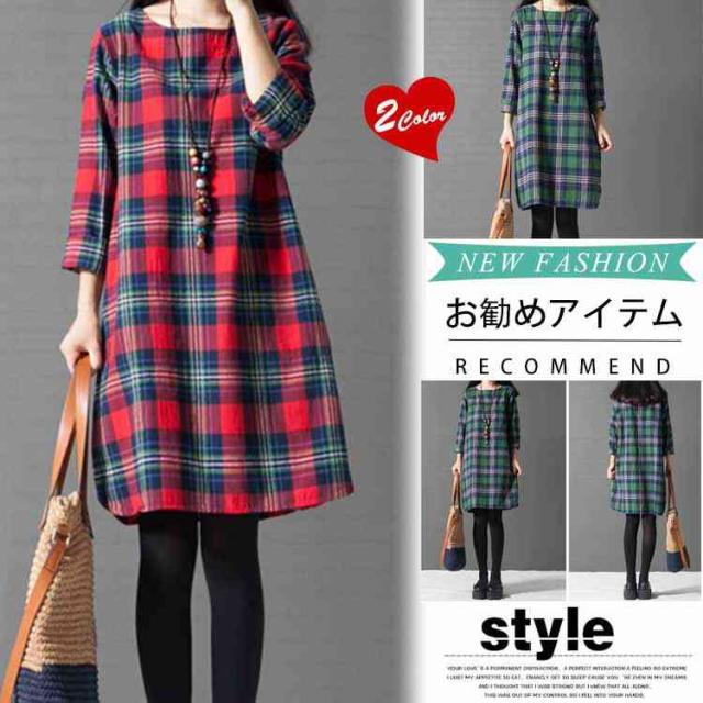 ワンピース チェック 長袖 リネンレディース 森ガール ワンピースAライン チェック柄 新作 レディース ファッション 人気 可愛い 大人 ひざ丈?