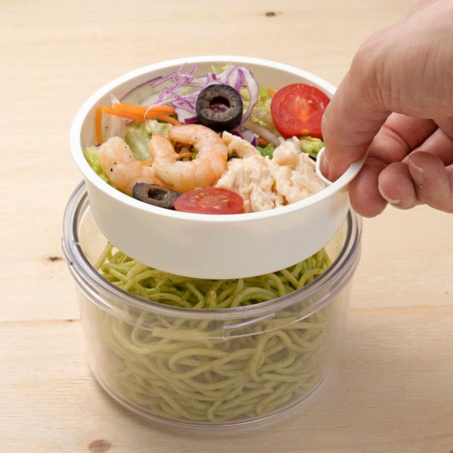 水切りすのこがついているので、余分な水分が落ちてシャキシャキサラダを食べることができます。中皿をつけて使うと、そうめんや冷製パスタ、ちらし寿司など料理の幅がグンと広がります。