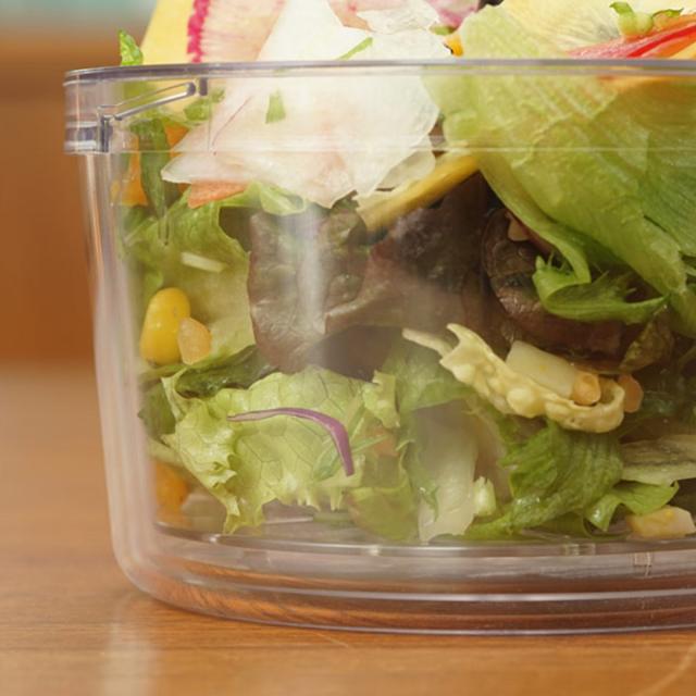 本体は二重構造になっているので保冷性が高いです。透明性の高い素材を使っていて、中身が見やすく食材も美味しそうに見えます。洗ったミニトマトや茹でたブロッコリーなどの保存容器として使うのもオススメです。