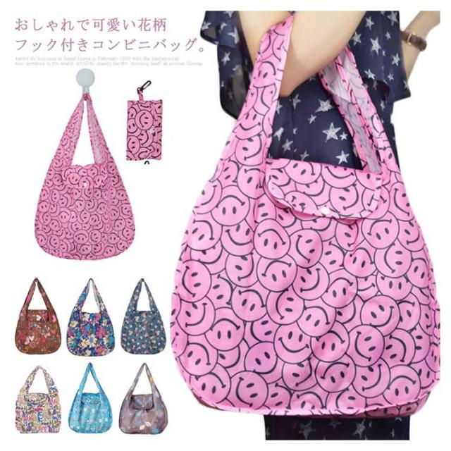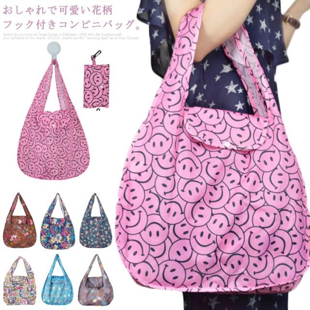 全7色 コンビニエコバッグ フック付き エコバッグ 花柄 送料無料 ジレ袋 マチ付き お弁当入れ 折りたたみ バッグ ショッピングバッグ 大容量 買い物バッグ トートバッグ 肩掛け 母の日 ギフト