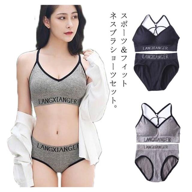 ブラジャー ショーツ セットアップ インナーセット 上下2点セット ブラトップ カップ付き スポブラ リブ パンツ 下着 ヨガ スポーツブラ スポーツウェア インナー 脇肉 バストアップ ノンワイヤー くびれメイク おなかシェイプ レディース 送料無料