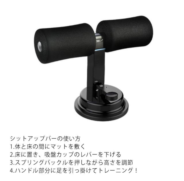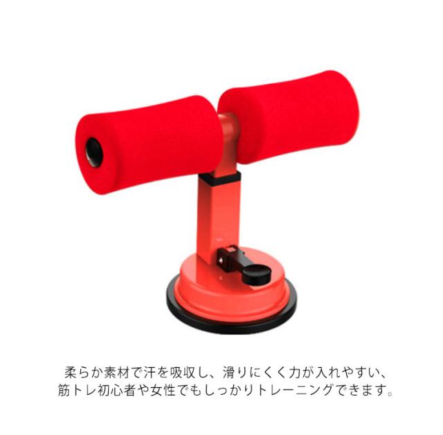 | 自宅で簡単エクササイズの運動器具。 シットアップバーは機器に手や足を固定することで、簡単に腹筋などのトレーニングをする事ができます。 スプリングバックルを押しながら上下移動させる事で簡単にお好みの高さに調節できます。 底部分が吸盤式だから機器をしっかり固定、トレーニング中にずれずに安心・安全◎ 柔らか素材で汗を吸収し、滑りにくく力が入れやすい、筋トレ初心者や女性でもしっかりトレーニングできます。 | |