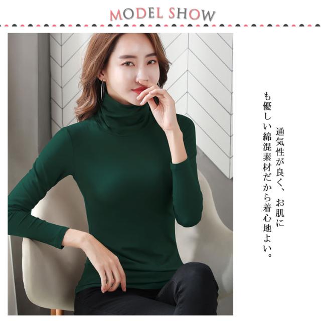 全9色!ハイネックカットソー ハイネックtシャツ tシャツ カットソー ハイネック インナー トップス 長袖 無地tシャツ コットン 防寒インナー スリム 大きサイズ 秋 冬 春