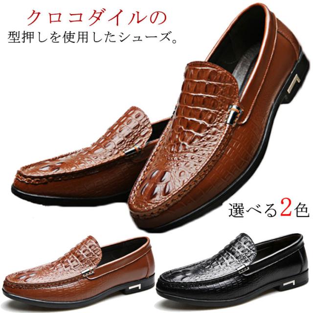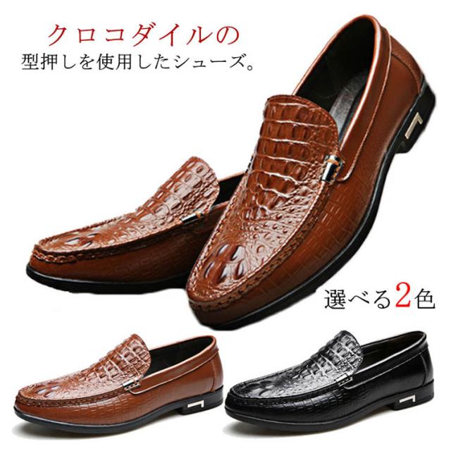 ビジネスシューズ 本革 ローファー クロコ型押し スリッポン シューズ ワニ レザーシューズ ワニ ビジネスシューズ ビジネス リアルレザー メンズ 冠婚葬祭 リクルート 紳士靴 革靴 靴 父の日
