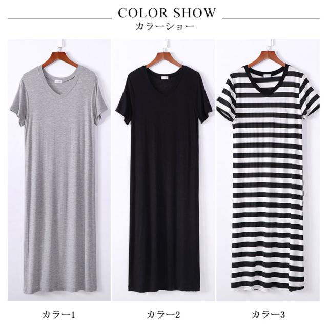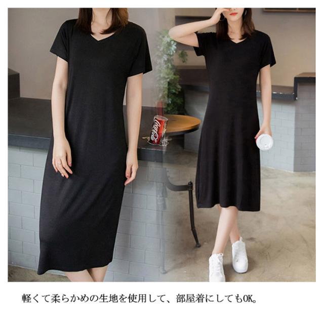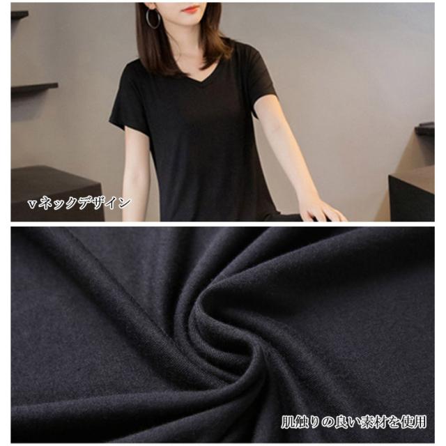 送料無料ワンピース ロングtシャツ レディース ミモレワンピース スリット入り 無地 vネック 半袖 カジュアル 可愛い 伸縮性 ストレッチ 通気性 柔らかい 夏物 通学 可愛い 夏新作