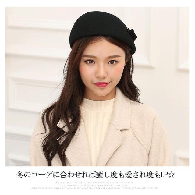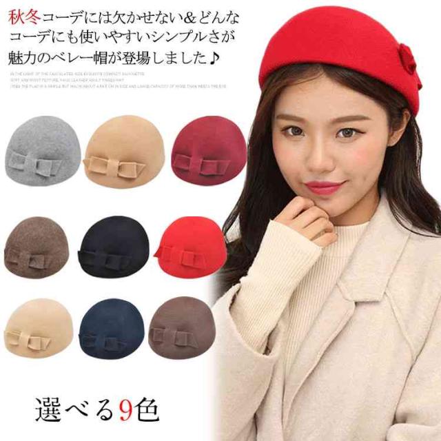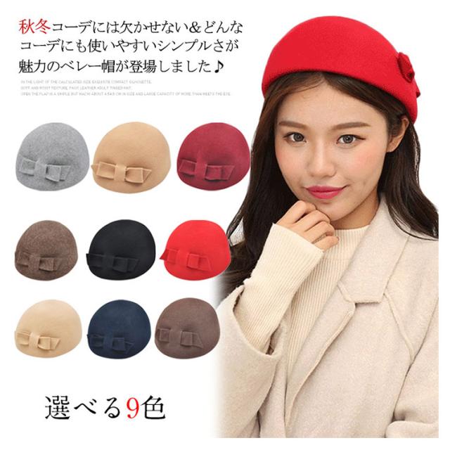 フェルト ベレー帽 ベレー帽子 ウール ベレー帽 リボン