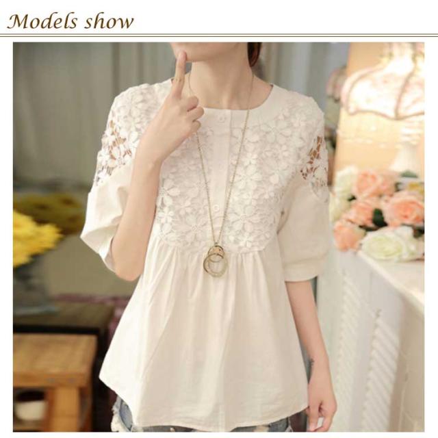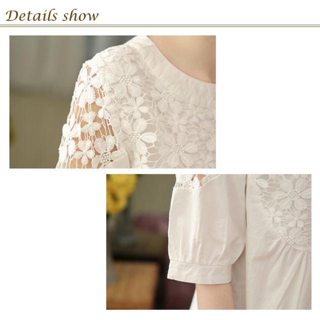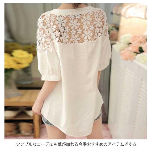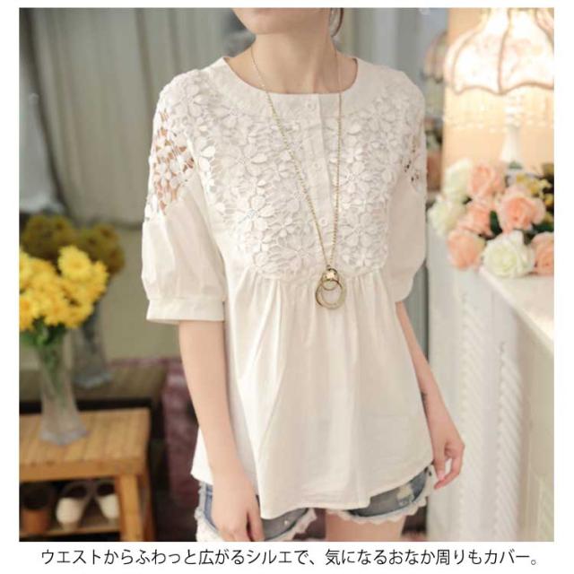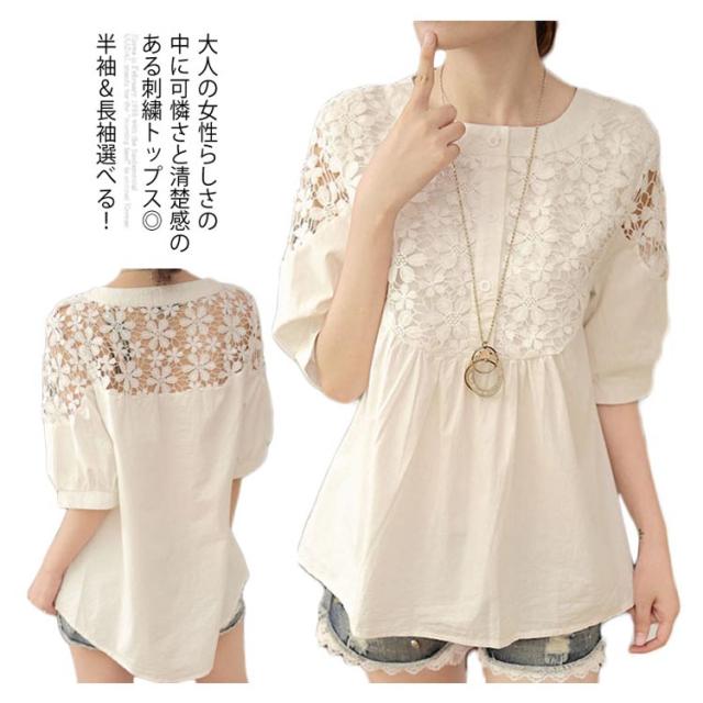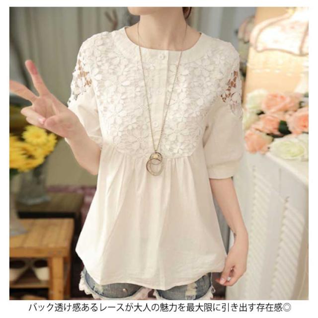 半袖&長袖選べる!Tシャツ トップス レースブラウス レーストップス 半袖 長袖 クルーネック バック透け 白 切り替え 大人可愛い 春 夏送料無料