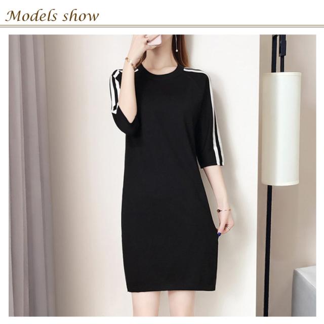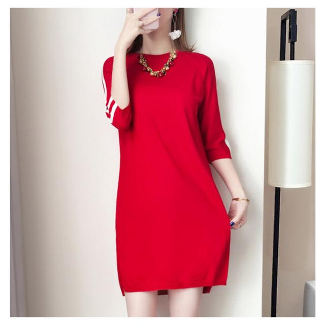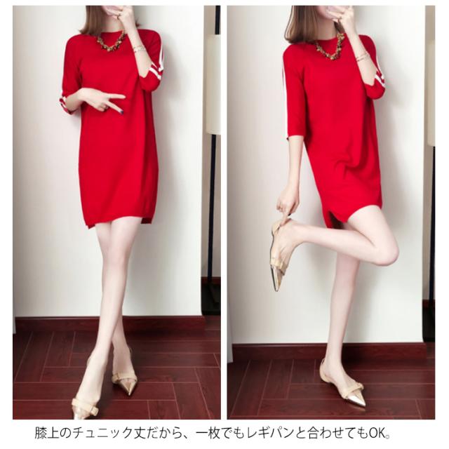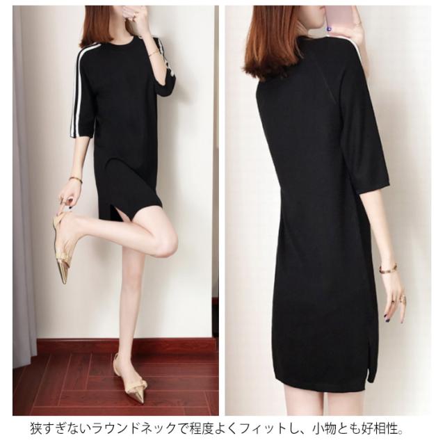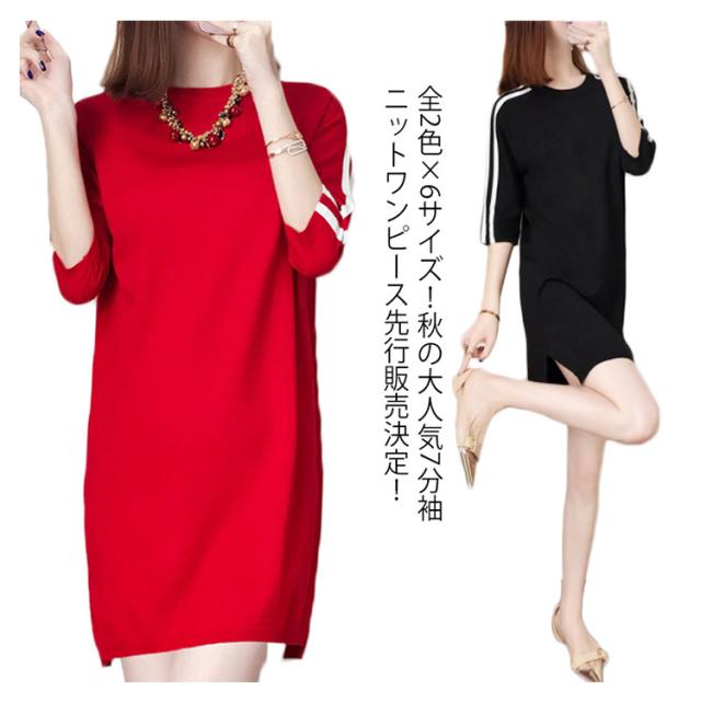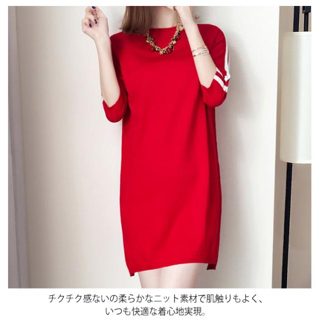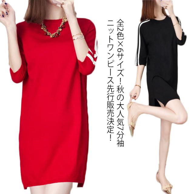 全2色×6サイズ!秋服 七分袖ニットワンピース ワンピース ニットワンピース ニットチュニック チュニックニット 7分袖 膝上丈 ゆったり ラウンドネック 大人可愛い送料無料