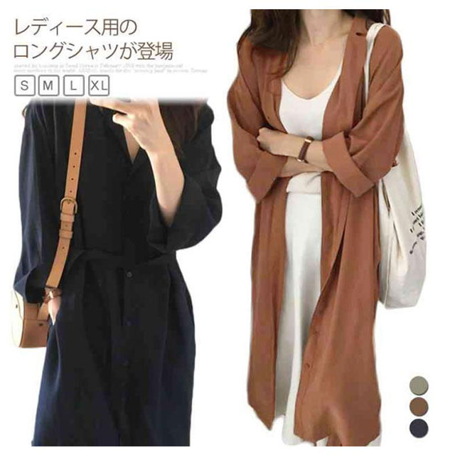 ロングシャツ レディース シャツ シャツワンピ マキシ丈 ゆったり ロングコート 薄手 カーディガン 女性用 ライトアウター カジュアル オシャレ送料無料