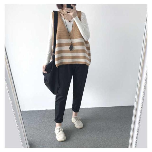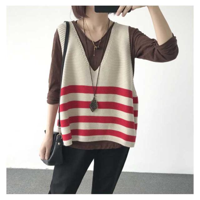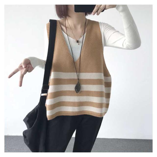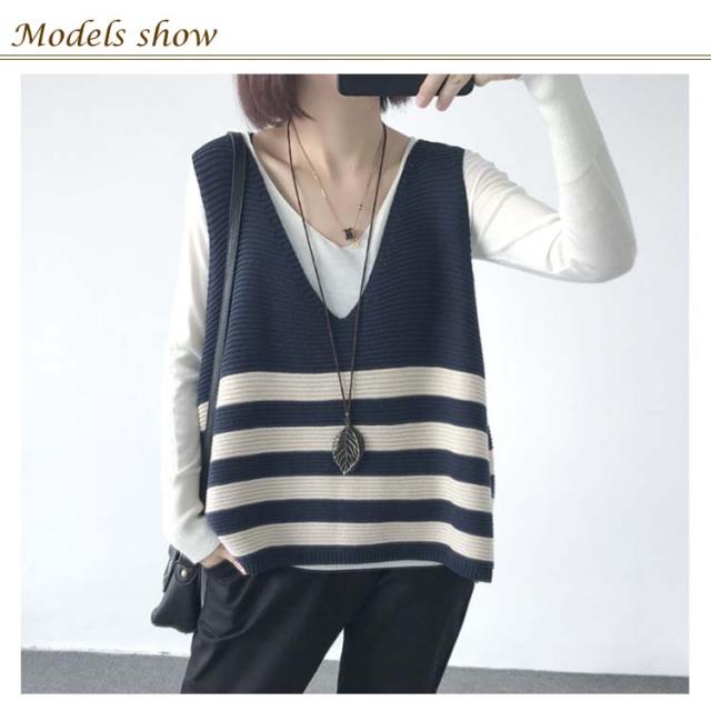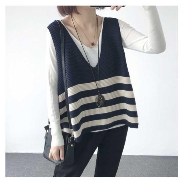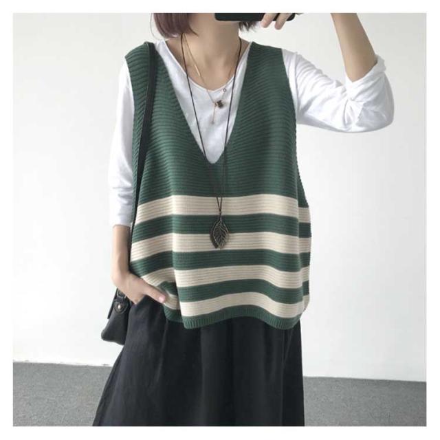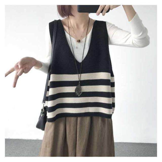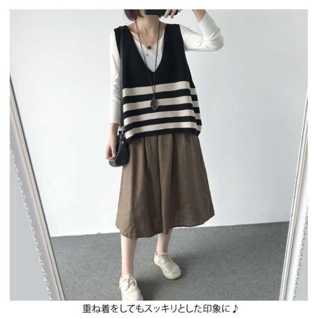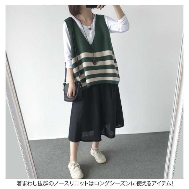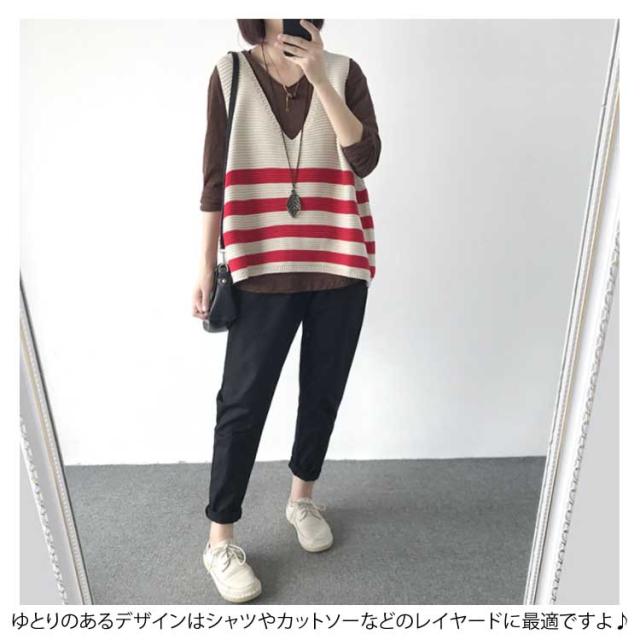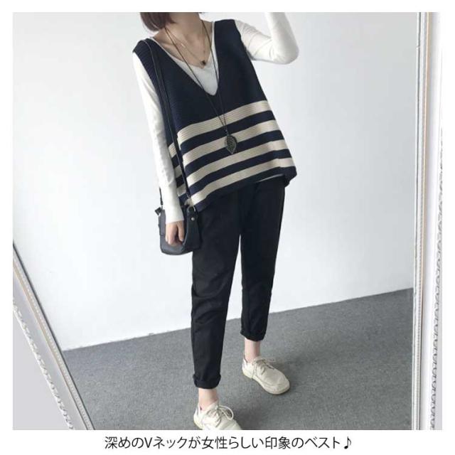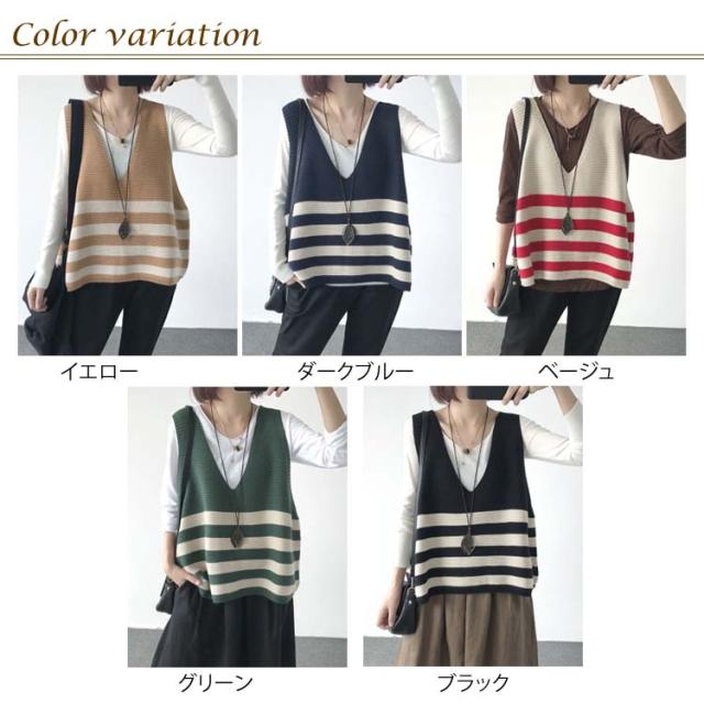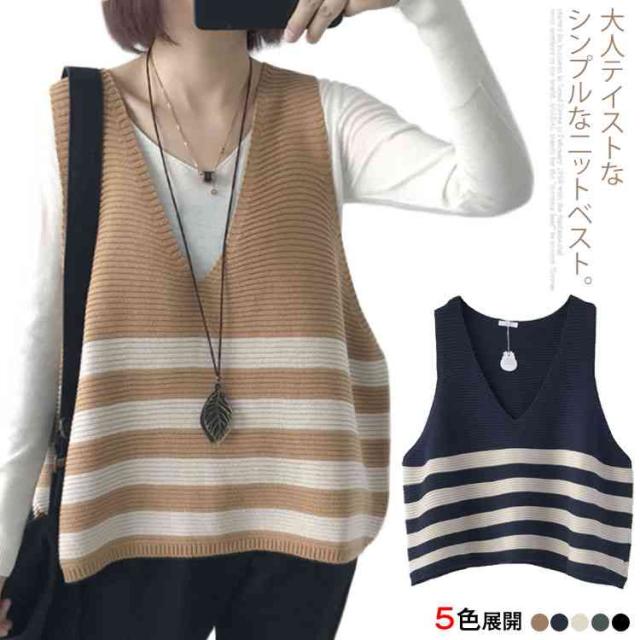 ベスト ニットベスト ボーダー 全5色 レディース トップス ノースリーブ Vネック ゆったり 大人可愛い 春服 秋服 薄手 冬服 体型カバー カジュアル 無地送料無料