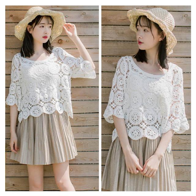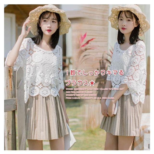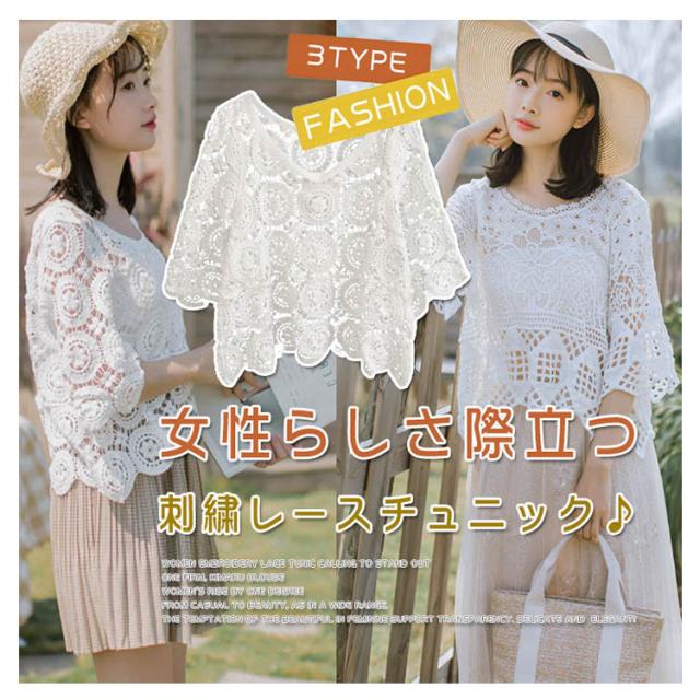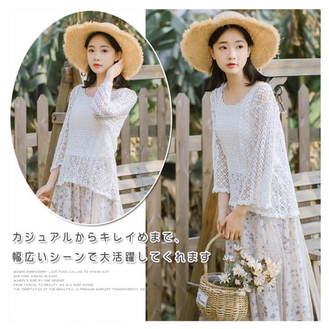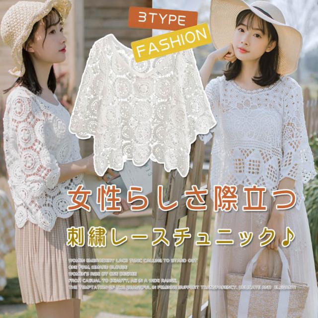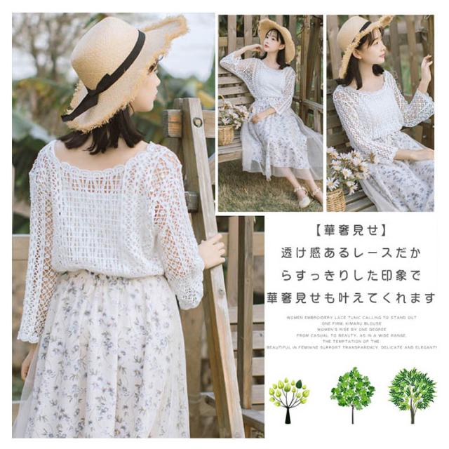 [5分袖/長袖選べる]チュニック ブラウス 白 レディース トップス レース 春夏 きれいめ 花柄レース シャツ 大人 きれいめ シャツ 体型カバー オフィス 通勤 可愛い 女子送料無料