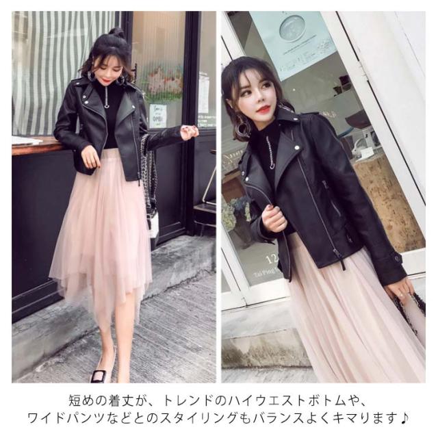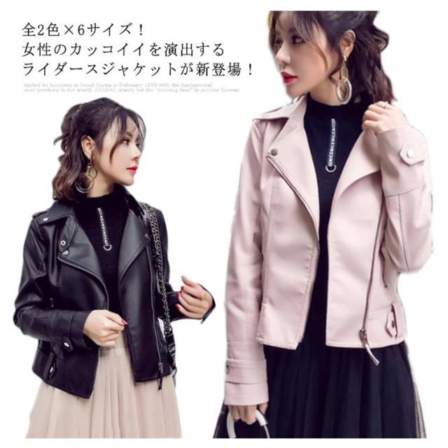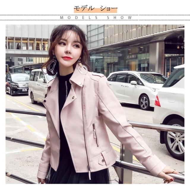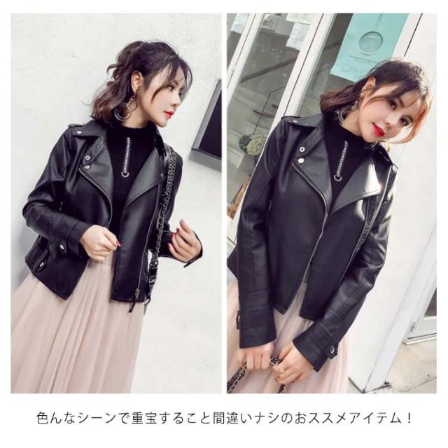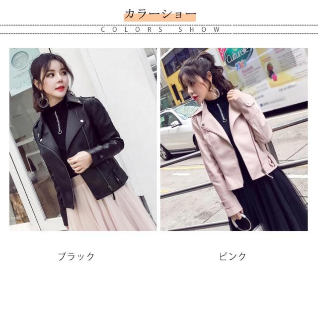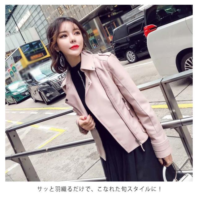 全2色×6サイズ!ライダースジャケット レディース フェイクレザー 合皮ジャケット ジャケット ブルゾン ライダース アウター ショート丈 防寒 おしゃれ 春 秋